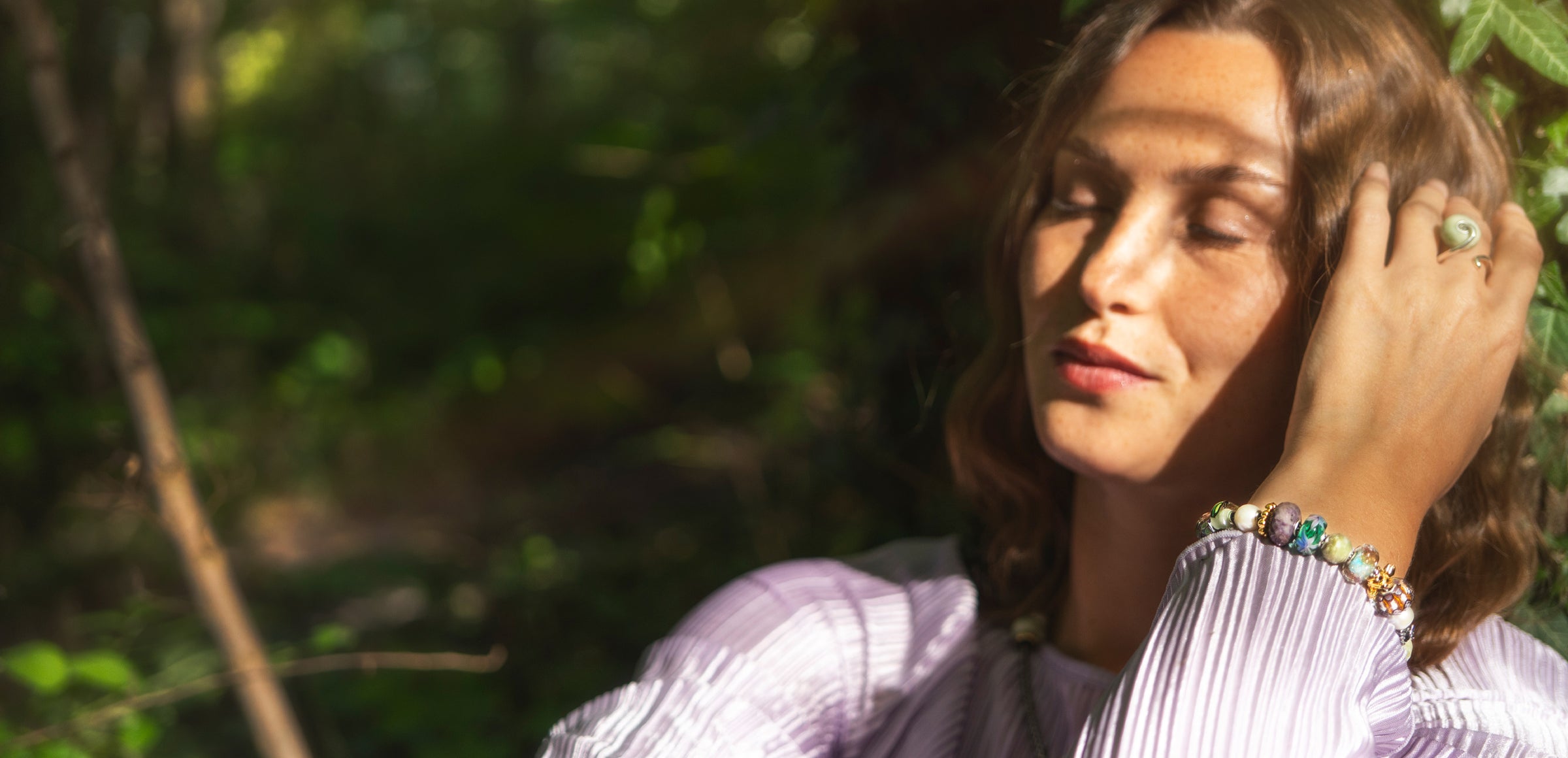 Blumen, die sich den warmen Sonnenstrahlen öffnen, magisches Licht zwischen den Bäumen und flatternde Schmetterlingsflügel... In der stillen Frühlingszeit des Waldes entstehen Geschichten. Schmetterlingsohrringe, schimmernde Glas Beads in lebhaften Farben, luxuriös vergoldete Bestseller und eine erfrischend neue Edelsteinkette.